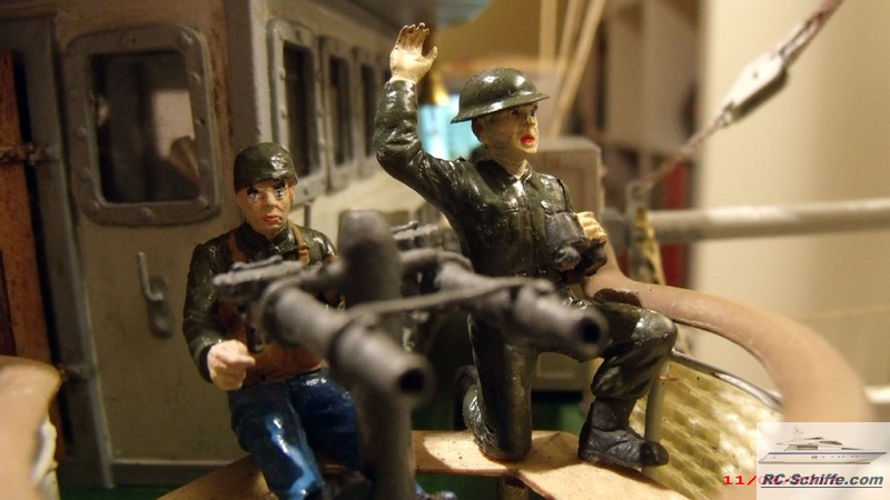 Geräusche: Kesselfeuer/Dampfmaschine-Leerlauf-Ein-Auskuppeln + Drehzahlabhängig div.andere Geräusche zufällig oder geschaltet, + WAW Player vor und rück, Rauchgenerator - Pizo Wasservernebler - 24V mit Gebläse Spannungswandler 12 auf 24V Vorschiff - Geschütz drehbar (Servo) Schuss mit Mündungsfeuer (Leuchtdiode) Beleuchtung: Positions- Lichter, Deck + Innen, Scheinwerfer, Steuerhaustüren auf - zu (Servo) |
