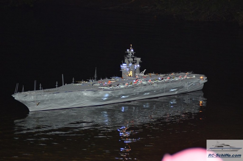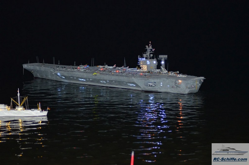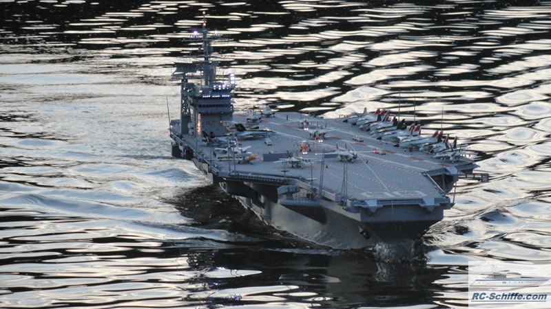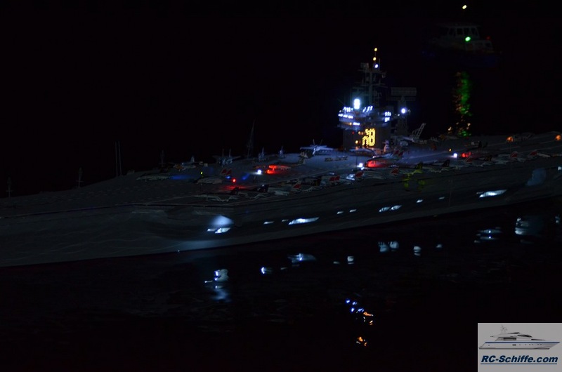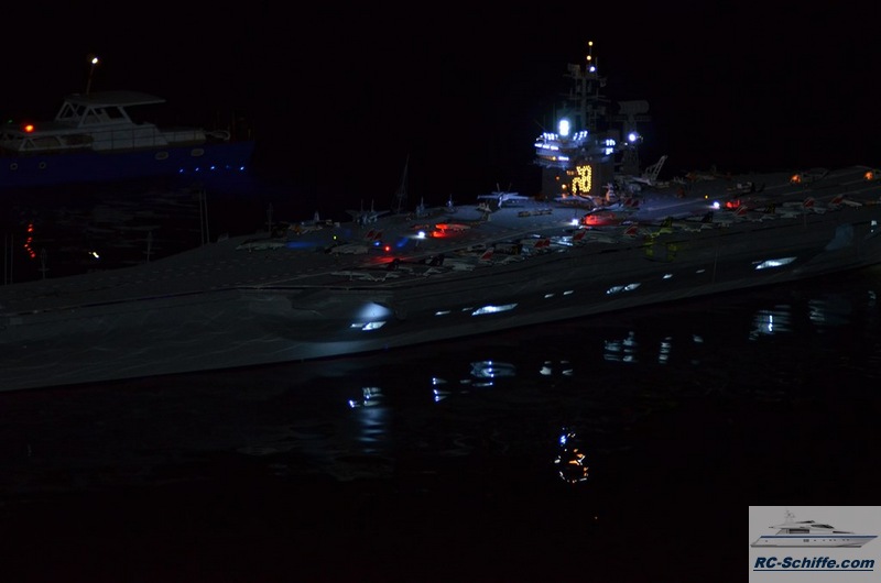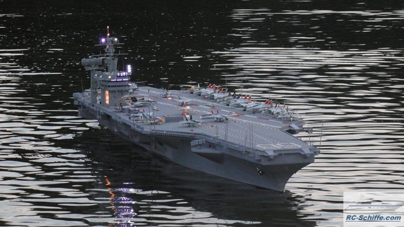 | Besonderheiten | 14 Antennen hoch und runterfahrbar, 6 Radar drehbar, 3 Raketenwerfer drehbar, Anker fallen lassen und reinholen, Hubschrauber Rotoren drehbar, Soundmodul, Jede Menge Licht: Komandoturm: 68 beleuchtet, Suchscheinwerfer, Arbeitsleuchten, 48 LED's, Navigationslicht (Lauflicht), Innenbeleuchtung, Toplicht, Radarturm: Suchscheinwerfer, Landedeck: Lauflicht, Startkanzel, Hubschrauberkanzel, 2 Flugzeuge mit Düsenbeleuchtung plus Positionslicht, 2 Autos mit Beleuchtung, Rumpf: Landekreuz (Meatball), Plattformen Raketenwerfer, Klüsen, Hangerbeleuchtung, Schweizlicht, Versorgunsplattform und Lüfterbleche beleuchtet, sämtliche andere Plattformen sind beleuchtet. |