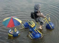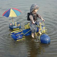 Die Verkleidung des "Dreirades" besteht aus ABS und ist wasserdurchlässig. Deshalb sind die Servos wassergeschützt und über der Wasserlinie angebracht.