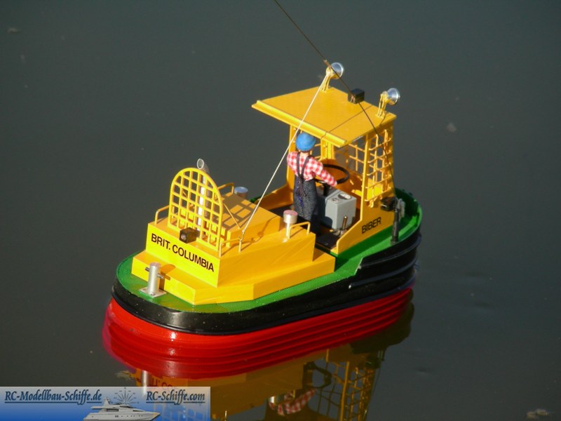 | Tipps für den Bau | Unter British Columnia wird man im Internet fündig und auf den Foto erkennt man das Arbeitsgebiet dieser Boomboote. Bedingt durch seinen runden Bug ist dieses Modell sehr schwer geradeaus zu fahren. Das stört beim Original weniger, da es ausschliesslich zwischen den Holzstämmen herum kurvt und dort sehr beweglich ist. |