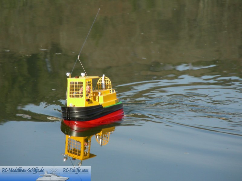 | Besonderheiten | Der Motor treibt über eien Zahriemen einen Rotorprop an, welcher im vorderen Rumpfdrittel angeordnet ist. die Steuerfähigkeit ist bei 240 Grad Drehung hervorragend und entspricht dem Original. Die üblichen Positionslichter sind mit LED realisiert. Zwei extrem starke Schein- werfer erhellen das Wasser vor dem Schiff. Eine Zahnstange im Bug sorgt für einen guten Halt mit den Baumstämmen.g |