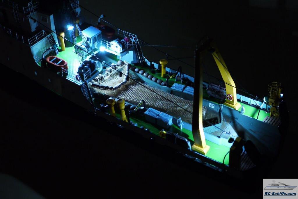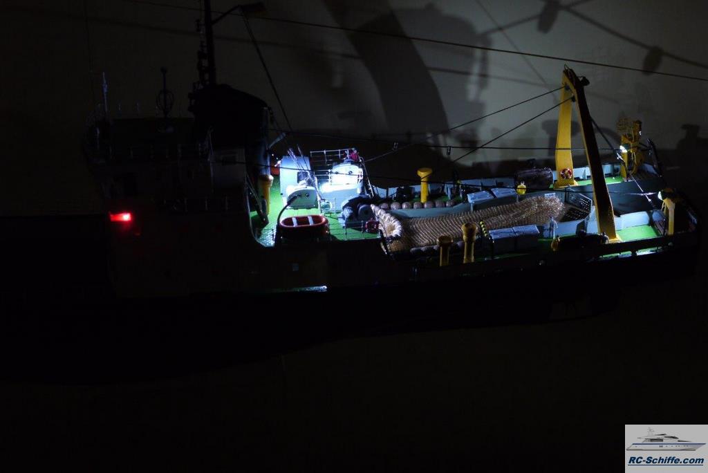 Beleuchtung LED, Nautische, Suchscheinwerfer und Decksbeleuchtung Arbeitsdeck Nach einem Plan von Harhaus gebaut. Von 1:50 auf 1:100 verkleinert, weil sonst bei mir bald kein Platz mehr zum Stellen wäre. Änderungen vom Plan nach historischen Fotos vorgenommen. |
