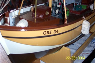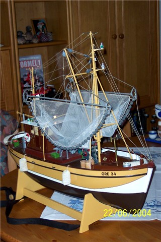 | Besonderheiten | verfügt über Beleuchtung Spot, Back- und Steuerbord ein Soundmodul Graupner "Fischkutter". Das Schiff liegt sehr gut im Wasser und hat ein tolles Fahrbild, da noch nachträglich alles verwogen wurde. Nach Original-Info's !! Das Schiff kommt aus GRE = Greetsiel. Die Nummer 34 resultiert daraus, weil die letzte Kennung mit 33 aufhörte, ex COL34-Schwerin. Modifiziert wurde eigentlich nur das Zubehör, d.h. Fahrtfunktion: vorwärts, rückwärts. Stufenlos Besonderes: Licht, back- und steuerbord, Suchscheinwerfer Sound: Diesel an- und Ablassen, Glocke, Typhoon, Möwengeschrei Gebaut: Nach meiner Ansicht: Super! Besonderes: Granat (Krabben) sind gefangen. Kiste "Jever" und viele Details |