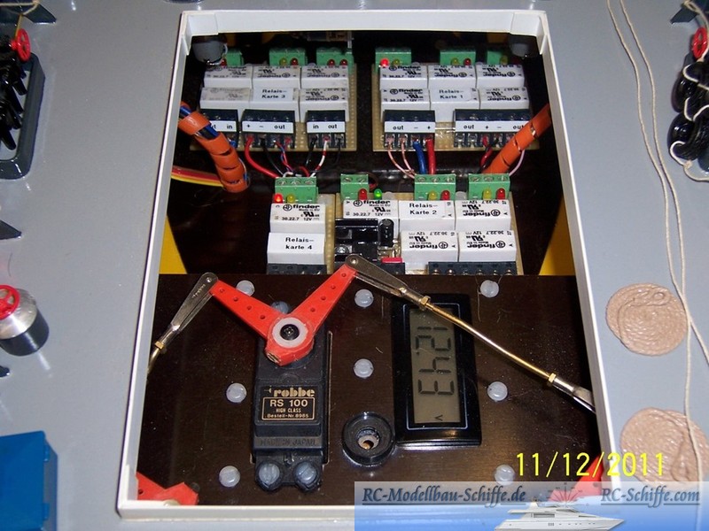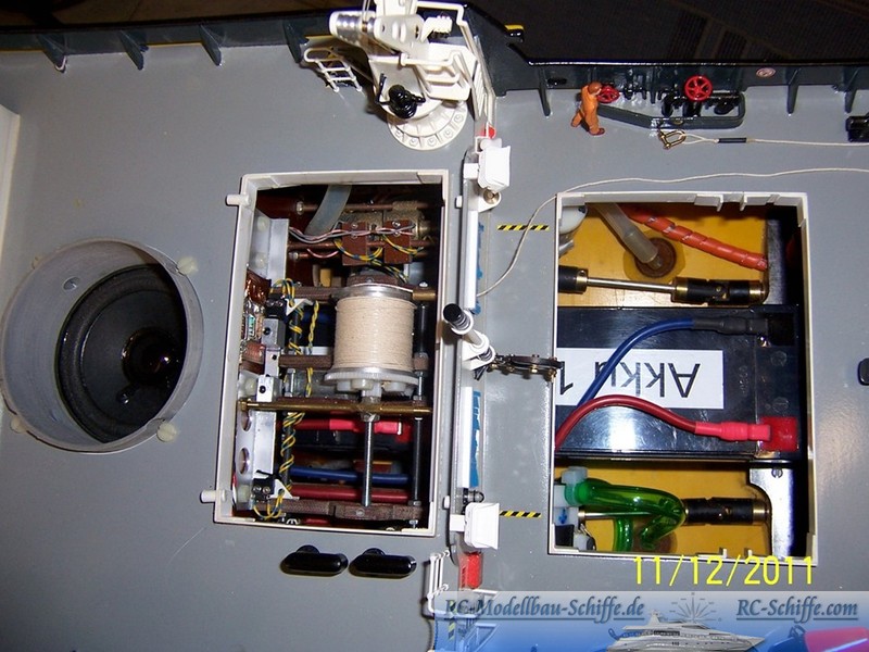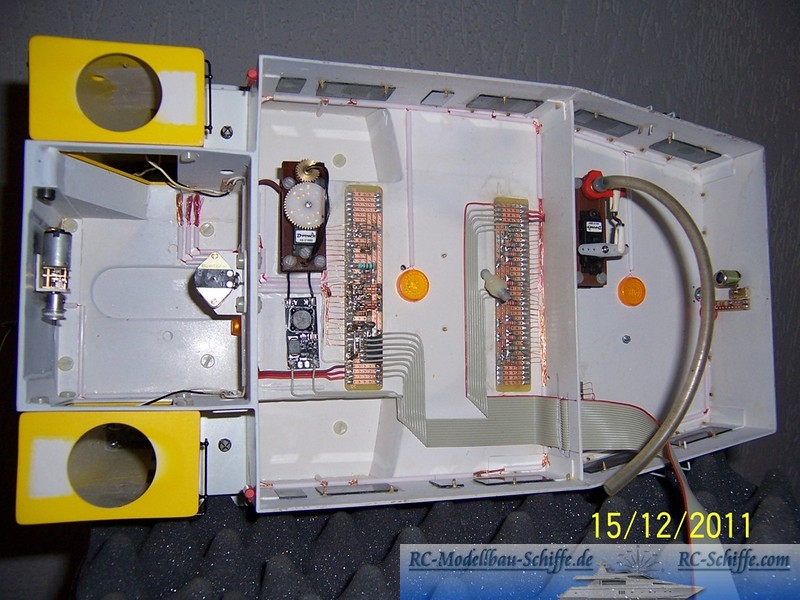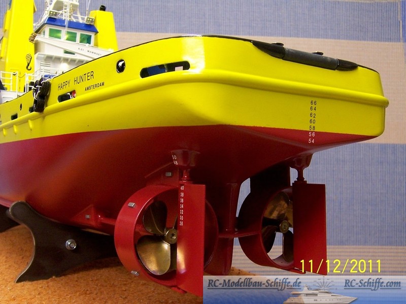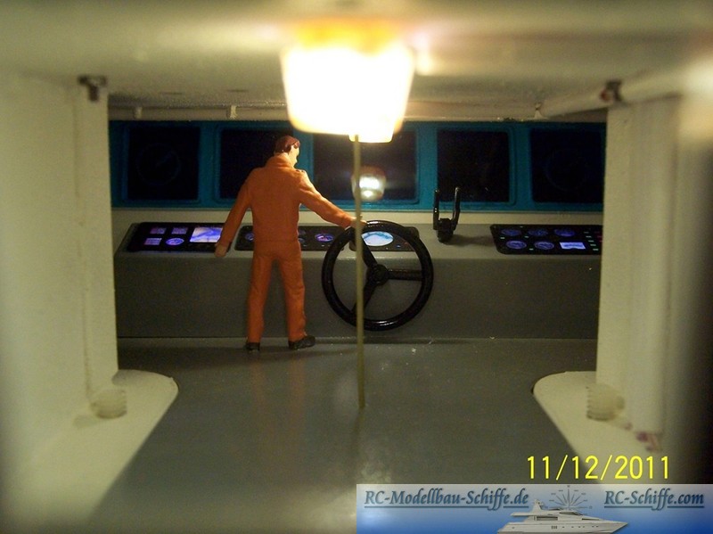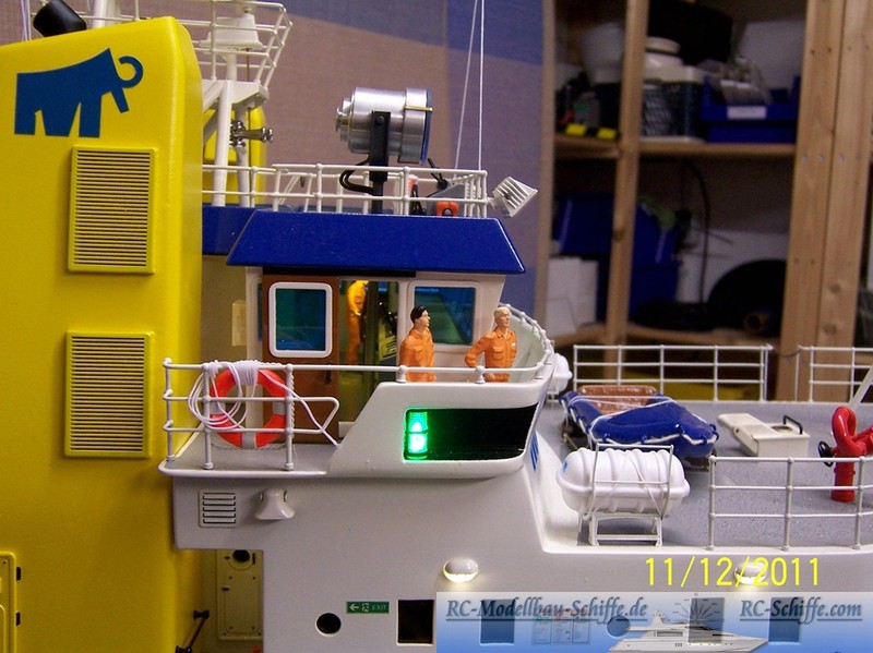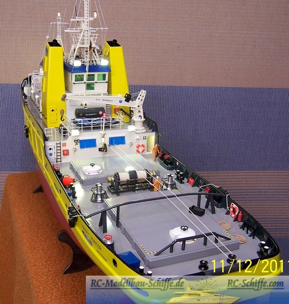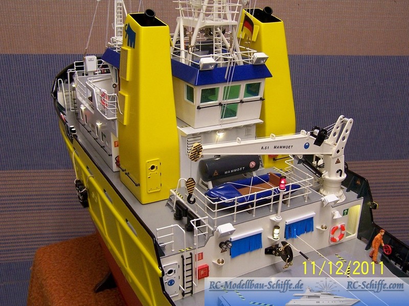 | Besonderheiten | Anker fallen lassen und langsam lichten, Schiffsglocke bewegt sich zum Sound Kühlwasseraustritt, 2 x Radar 2 x Seilwinden, eine zum Schleppen, Schlepphaken (ausklinkbar) Seematz (schwenkbar) Löschmonitor (schwenkbar) und Querstrahlruder mit Sanftanlauf, 2x Winschen drehbar, Fahne auf/ab, Leckwasserwarnung, Kran: 3 Achsen mit Endlagenabschaltung, 2 x Rauchgeneratoren, Licht: 4 verschiedene Stromkreise, Sounds: Anker, Glocke, Horn, Großdiesel, Möwen, Seefunk, Morsen usw... |