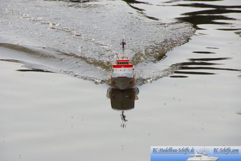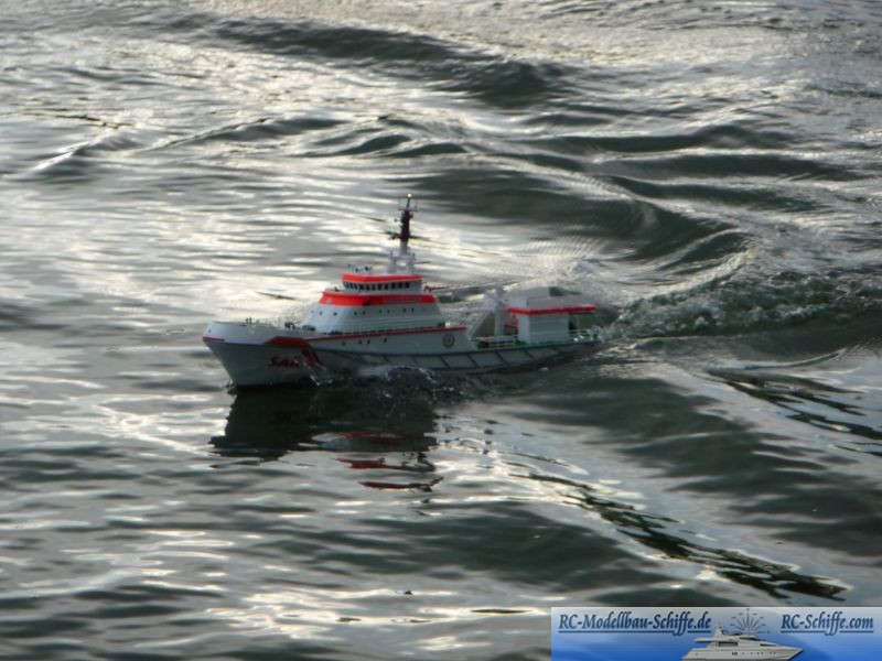 | Tipps für den Bau | Schwerpunkt tief legen, Gewicht einsparen, Aüßere Ruder etwas vergrößern und dafür das Mittelruder nicht ansteuern, da dort die Tochterbootwanne drüber liegt. |