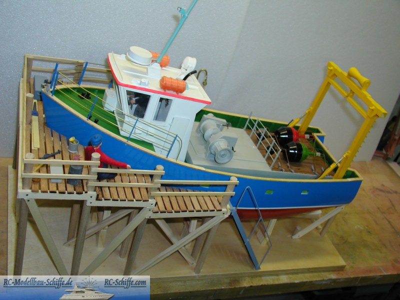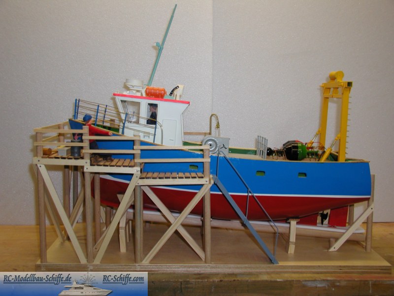 | Besonderheiten | Zusammen mit einem Boulogne de etaples-Rumpf wurde ein freier Nachbau eines bretonischen Tonnenleger angefertigt. Es handelt sich um eine Weiterbildungsarbeit mit dem 14 jährigen Enkel. Viele seiner Wünsche konnten hier einfliessen, so auch ein bewegliches H-Frame mit einem Kranhacken für die Tonnen. Natürlich wurde auch eine komplette Befeuerung eingebaut. |