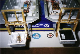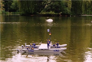 | Besonderheiten | Liftbarer Aussenmotor Beleuchtung Wasserspritze restliche Elektronik selber gebaut Rumpf aus Holz ( GFK beschichtet ) Nach Fotos und selbstgefertigten Skizzen gebaut zwei bewegliche Auffahrrampen |