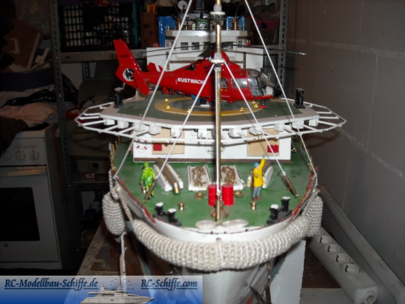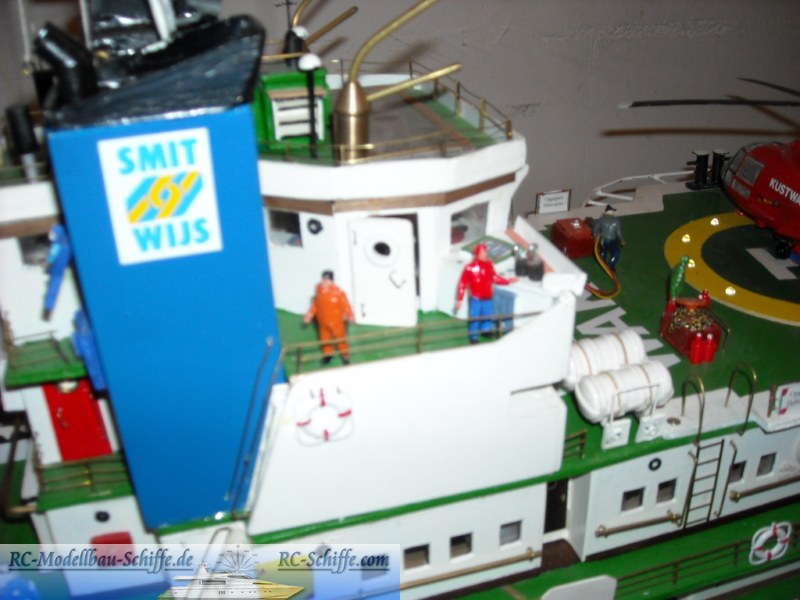 | Besonderheiten | 2 getrennt ansteuerbare Motoren,2 Raucherzeuger, Bugstrahlruder,drehendes Radar,Rundumlicht Helilandeplatz, drehender Rotor und Blitzer am Heli,funktionsfähige Ankerwinde,Beleuchtung,Ankerlicht |