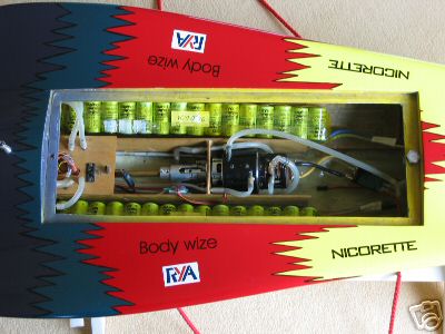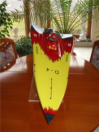 | Besonderheiten | 2x schwenkbarer Keilruder aus Alu mit Kühlwasseraufnahme, Geschwindigkeitsregulierung, Autopilot von Conrad, Edelstahlantenne |
