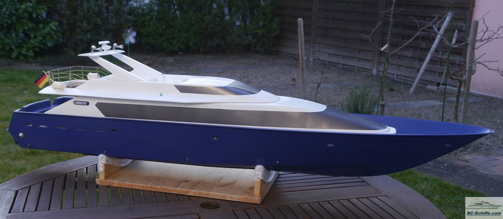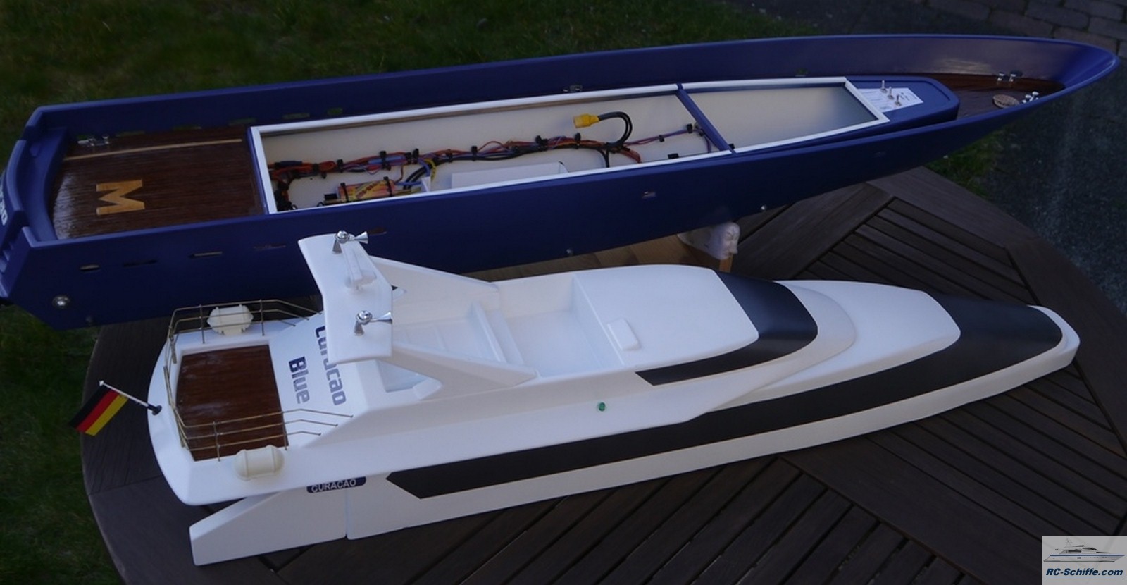 | Besonderheiten | Rückfahrklappen, Unterwasserbeleuchtung und LED Beleuchtung (Positionslichter, Deckslicht), Kühlwasserpumpe 12V über Stepdown-Schaltung, Zugangstreppen zu Badeplattform, Mahagoni Deck |