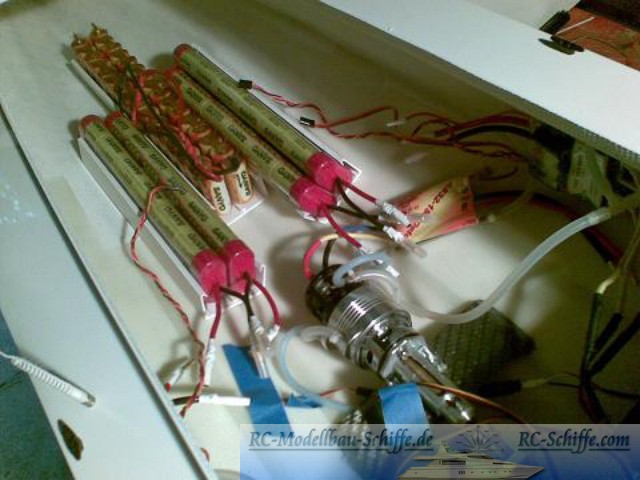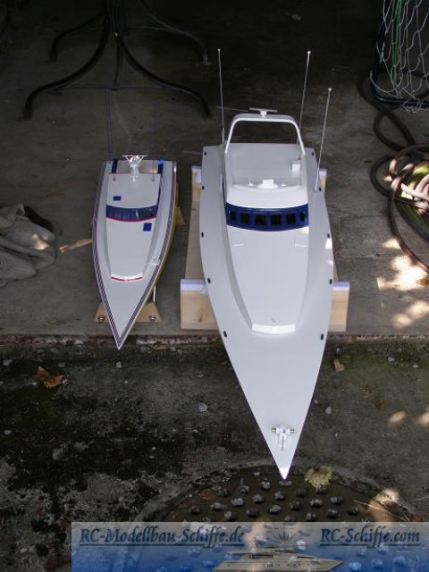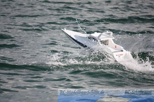 | Besonderheiten | Das Schiff wird von2 Kehrer mit je einem Brushlessmotor angetrieben Um höhere Geschwindigkeiten erreichen zu können, wird bei höherer Gasstellung der Booster dazugeschaltet( 32 Zellen ). Dabei erreicht das Boot ca. 70 km/h |