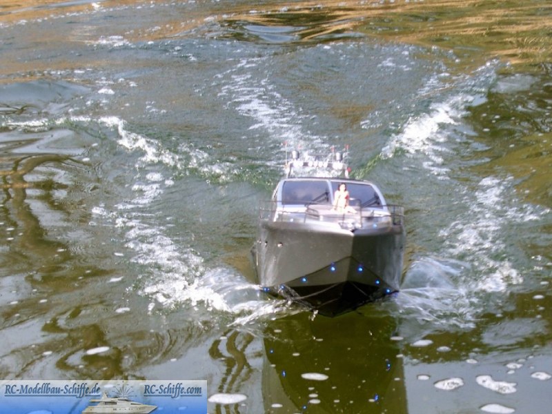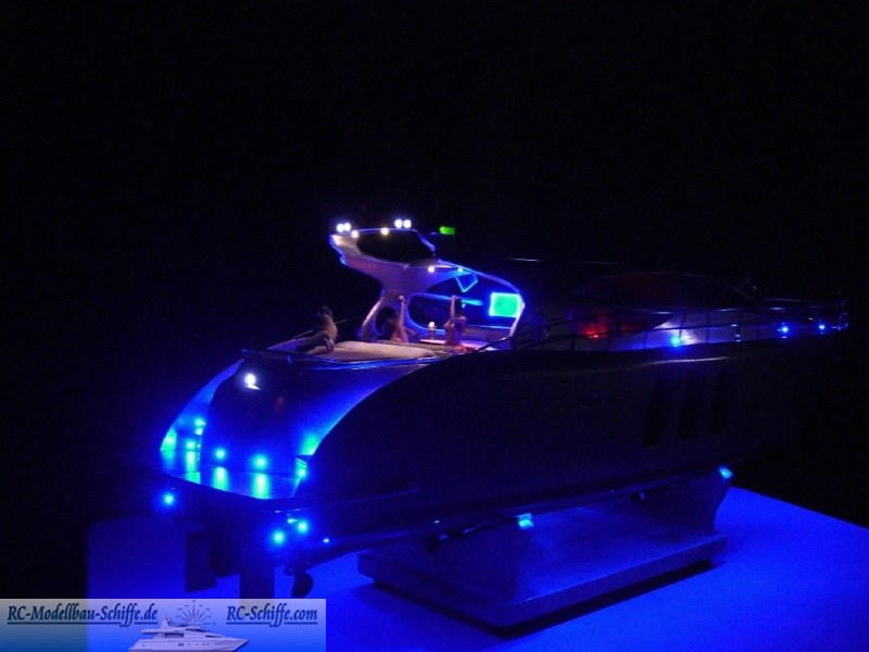 | Besonderheiten | Beibootgarage öffnet und schließt über RC. Öffnungs- und Schließzeit einstellbar auf momentan 15 sec. Für die Beleuchtung wurden 87 LED's und SMD's verbaut. Über ein vier-Kanal Schaltmodul werden vier Beleuchtungskreise Wie Unterwasserbeleuchtung, seitliche Bord- und Stufenbeleuchtung, Deckenbeleuchtung sowie 12 Strahler im Geräteträger geschaltet. Die Cockpit-Kontrolleuchten erfolgen über dünne Lichtleiterfasern. |